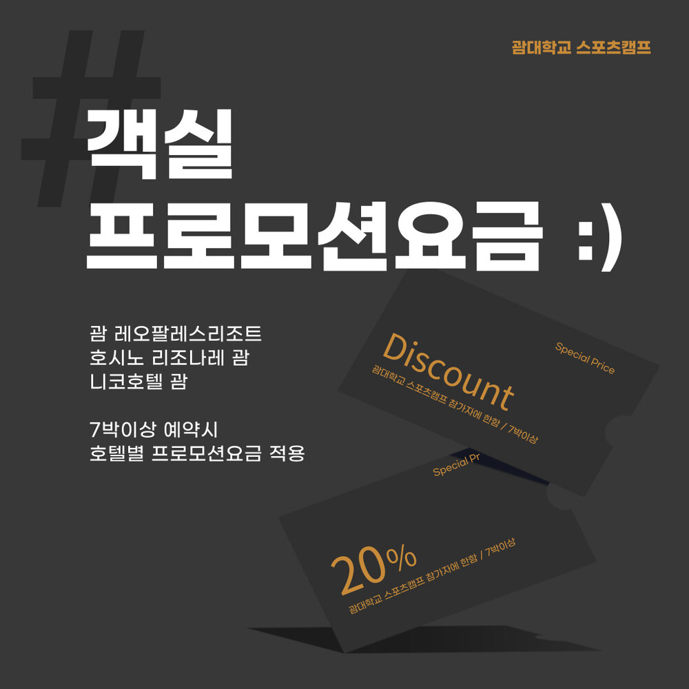 ■ 괌 레오팔레스리조트 예약센터에서는 괌대학교 스포츠캠프 참가자분들을 위해 호텔별 프로모션 요금을 제공해 드리고 있습니다.